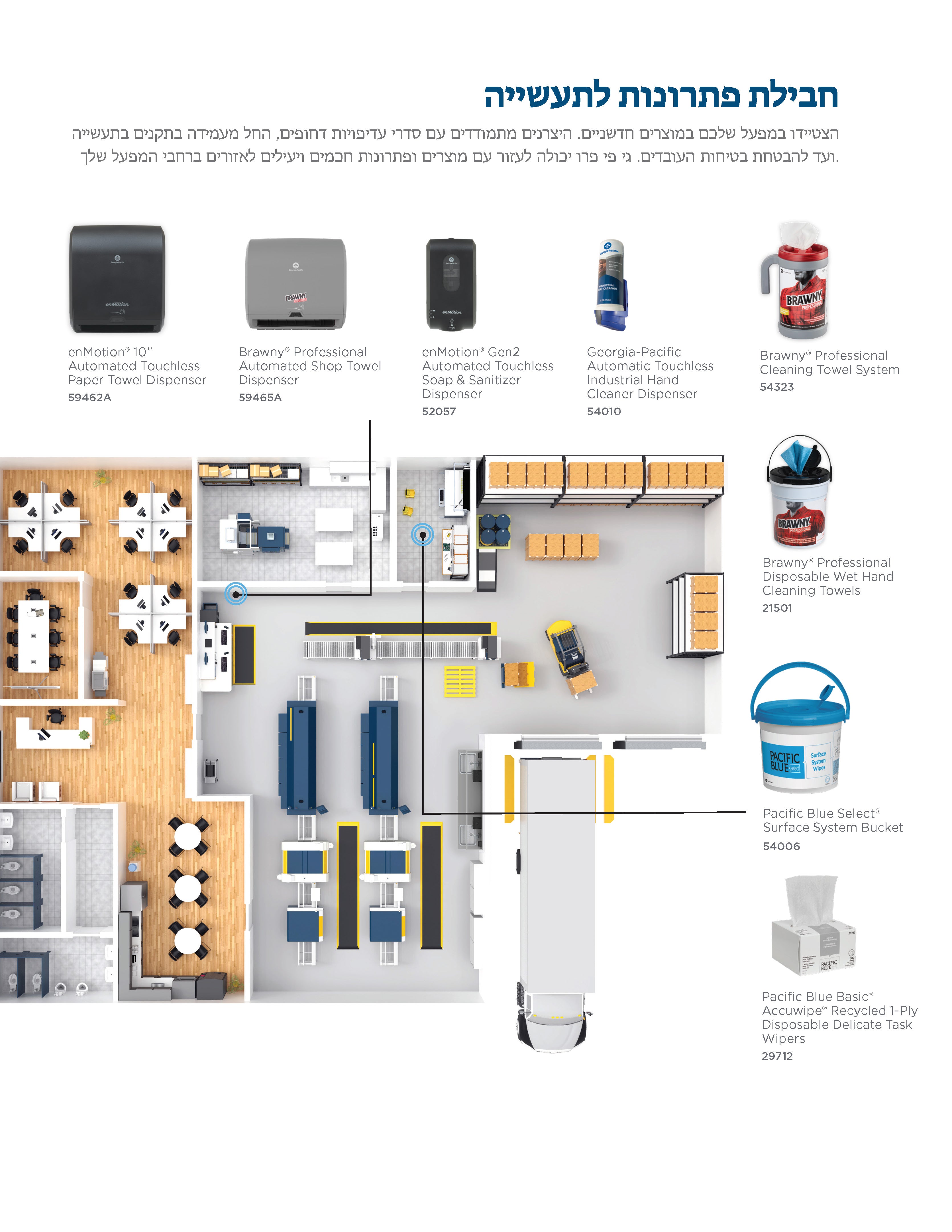 הצטיידו במפעל שלכם במוצרים חדשניים. היצרנים מתמודדים עם סדרי עדיפויות דחופים, החל מעמידה בתקנים בתעשייה ועד להבטחת העובדים, ג'י פי פרו יכולה לעזור עם מוצרים ופתרונות חכמים ויעילים לאזורים במרחבי המפעל שלכם.