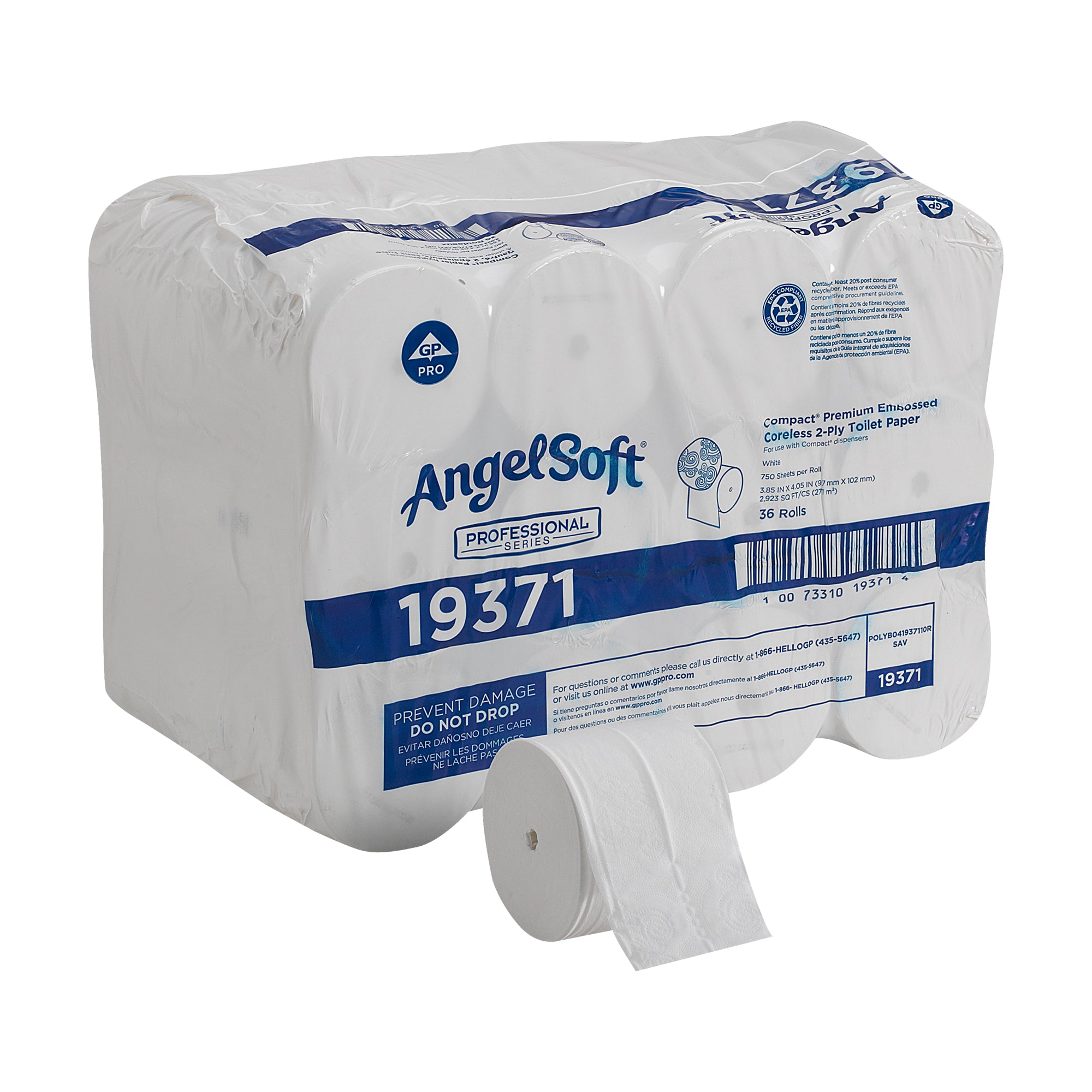 נייר טואלט דו-שכבתי ללא ליבה מובלט באיכות גבוהה מהסדרה המקצועית של ®Angel Soft Professional COMPACT, (36 גלילים של 76.20 מטרים סהכ 2743.20 מטרים) 27,000 גליונות למארז