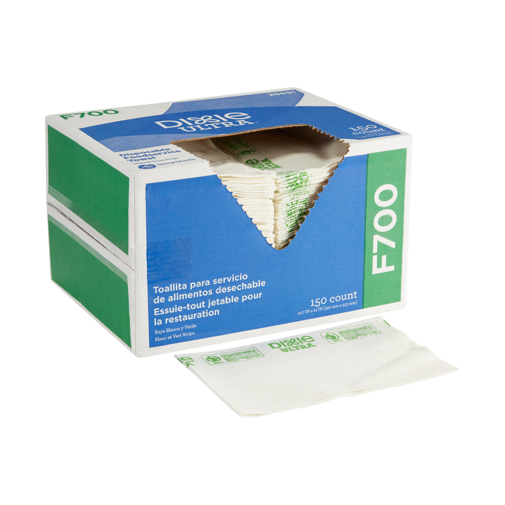 מגבות שירות מזון חד פעמיות DIXIE ULTRA® F700 של GP PRO (ג'ורג'יה פסיפיק), פס לבן וירוק, 150 מגבות בקופסה