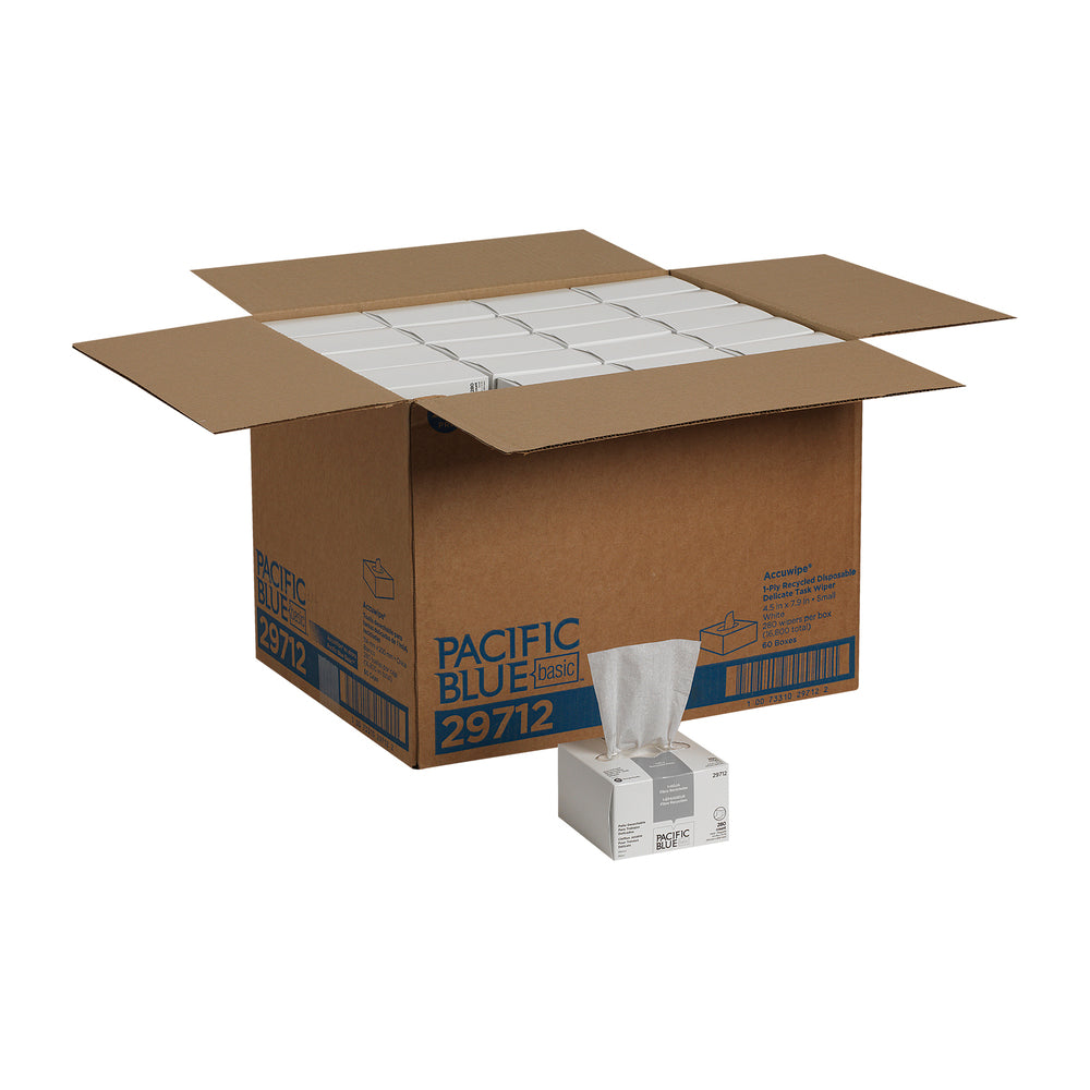 PACIFIC BLUE BASIC™ ACUWIPE® מגבי עבודה עדינים חד שכבתיים ממוחזרים מבית GP PRO, קטנים, לבנים, (60 קופסאות של 280 מגבות סהכ 16,800 מגבות)