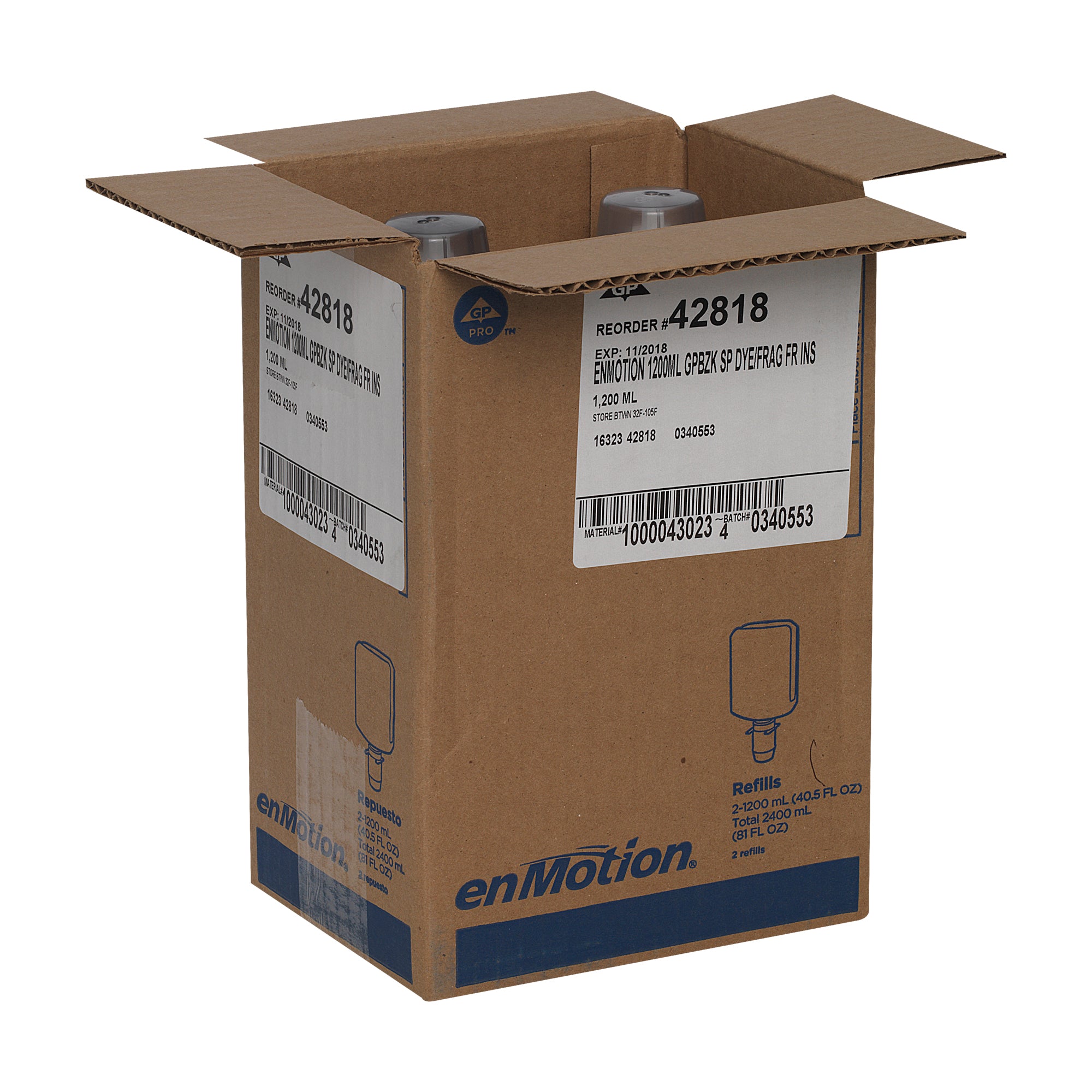 סבון קצף אנטי-מיקרוביאלי בתוספת קרם לחות ENMOTION® GEN2 מבית GP PRO, נטול צבע וריח, (2 בקבוקים של 1,200 mL סהכ 2,400 mL), 6,000 שימושים