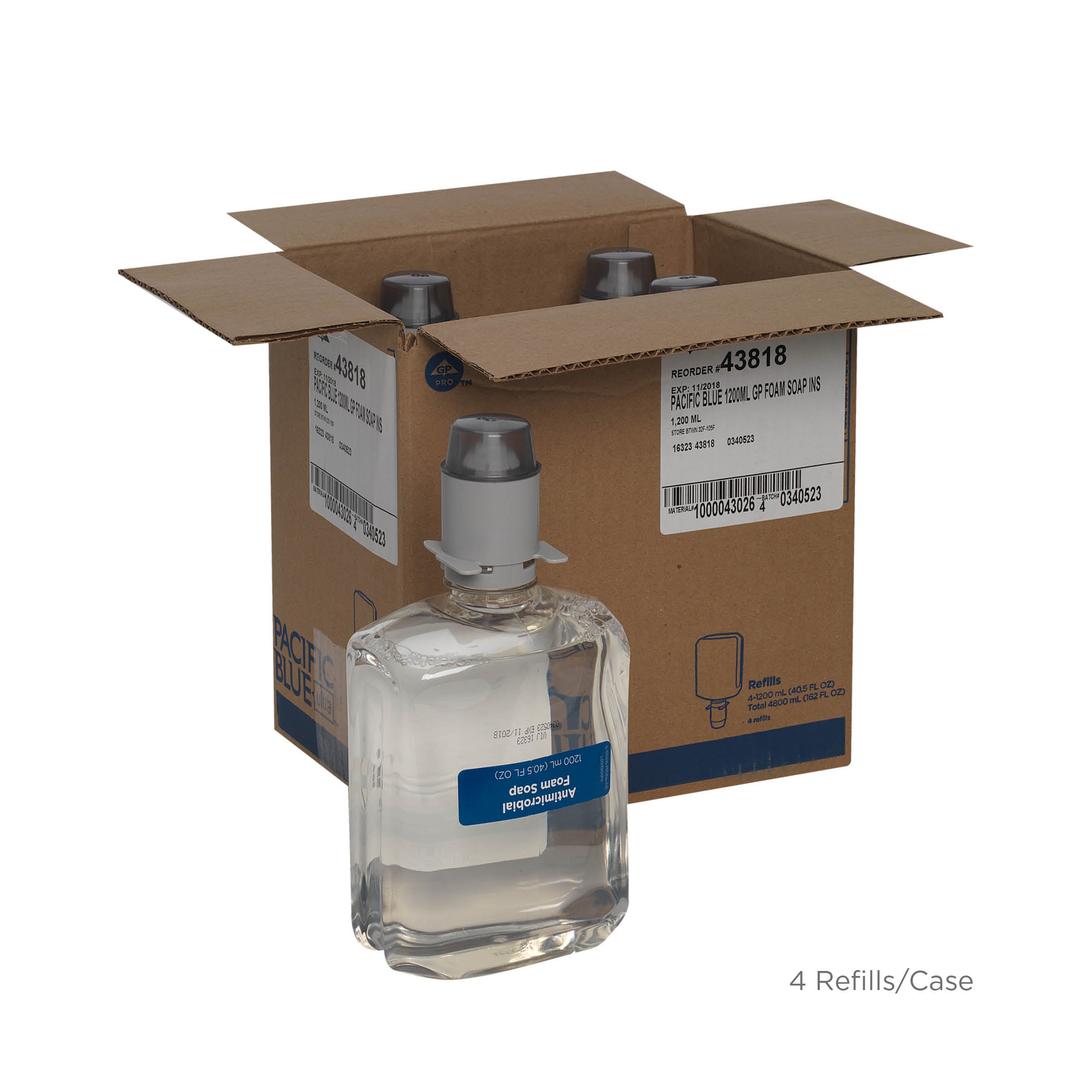 סבון ידיים מוקצף אנטי מיקרוביאלי PACIFIC BLUE ULTRA™ למתקנים ידניים מבית GP PRO, ללא צבע וניחוח, (4 בקבוקים של 1,200 mL סהכ 4,800 mL)