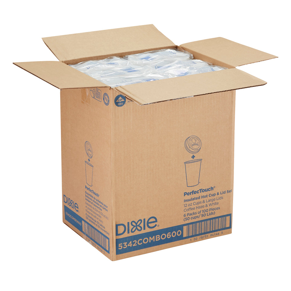 ערכות כוסות ומכסים קפה חם מנייר מבודד DIXIE® PERFECTOUCH® 12 OZ מבית GP PRO, קפה ערפל קפה, 300 כוסות ו -300 מכסים לכל מארז