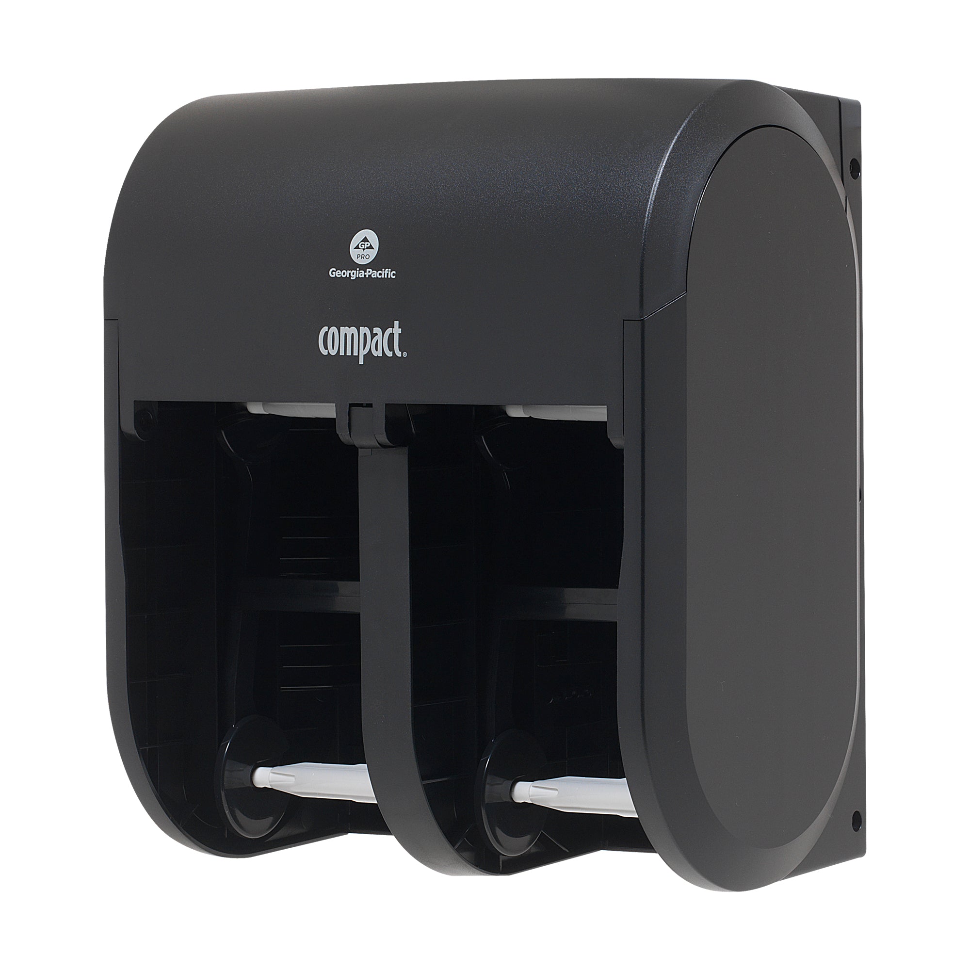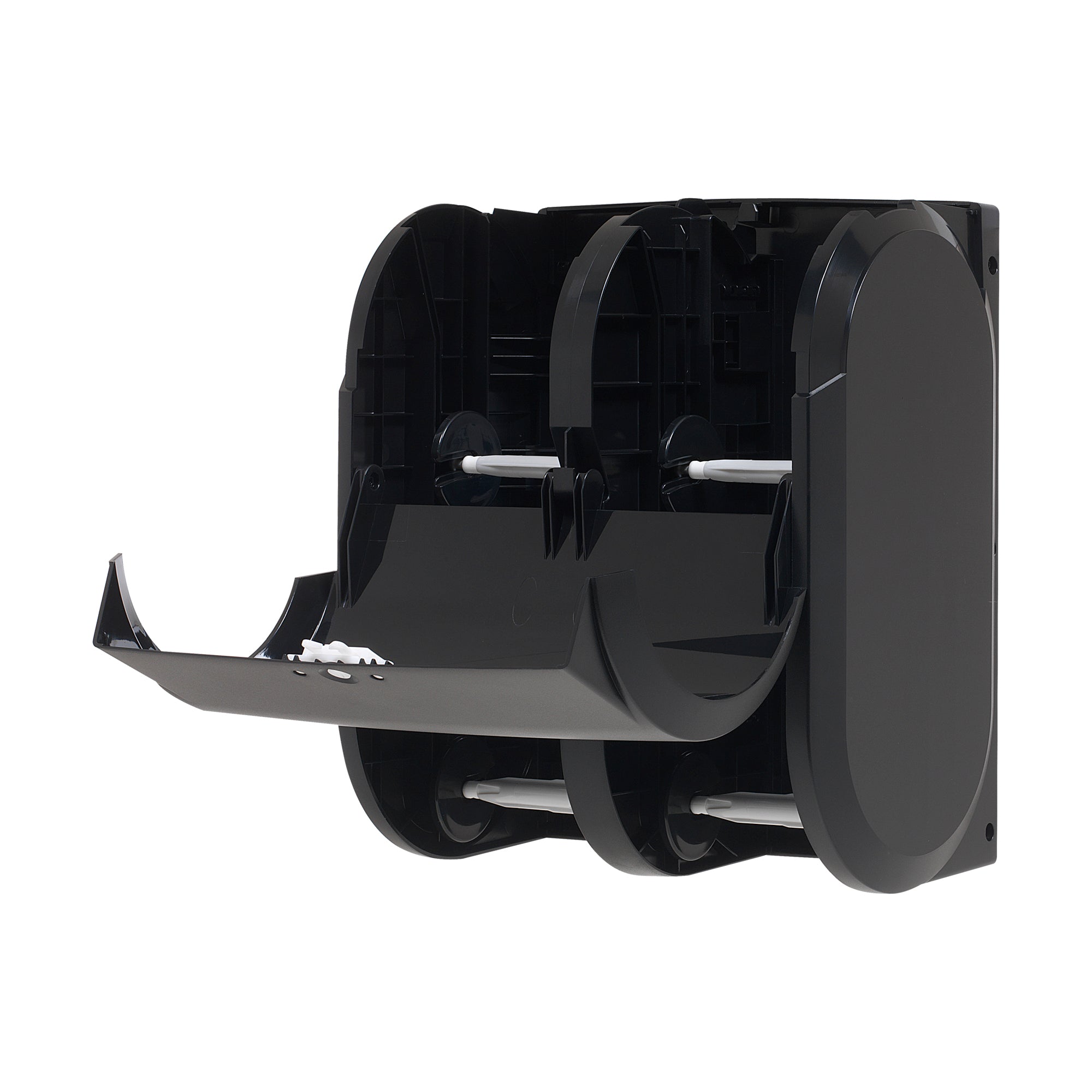 מתקן נייר טואלט בעל קיבולת גבוהה עם ארבעה גלילים ללא ליבות Compact®, שחור, מתקן אחד