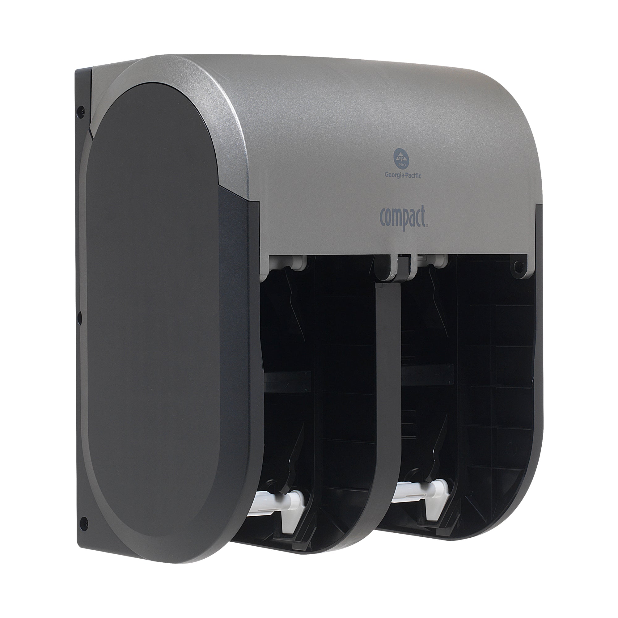 מערכת חלוקת נייר טואלט עם גליל כפול אטרקטיבית מסדרת Compact® המספקת קיבולת של עד פי שישה מגלילים דו-שכבתיים סטנדרטיים, תוך שמירה על המראה המקצועי. מתקן זה מספק 3000 גיליונות של רקמה דו-שכבתית איכותית או 6000 גיליונות חד שכבתית, לשירות רציף ולשביעות רצון מוגברת של אנשי התחזוקה. מתקן זה כולל משוט העברה למניעת גישה לגליל חדש לפני השימוש במלואו של הגליל הנוכחי, ומציע את אחד הפתרונות החסכוניים ביותר לחלוקת נייר טואלט בקיבולת גבוהה.