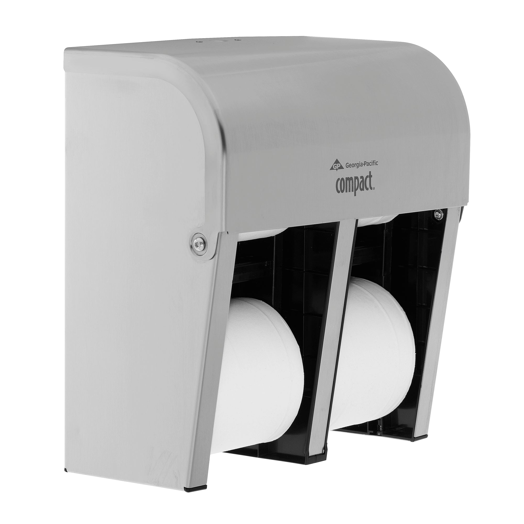 מתקן נייר טואלט בעל קיבולת גבוהה עם 4 גלילים ללא ליבות מסדרת Compact® מבית GP PRO (ג'ורג'יה פסיפיק), נירוסטה, מתקן אחד