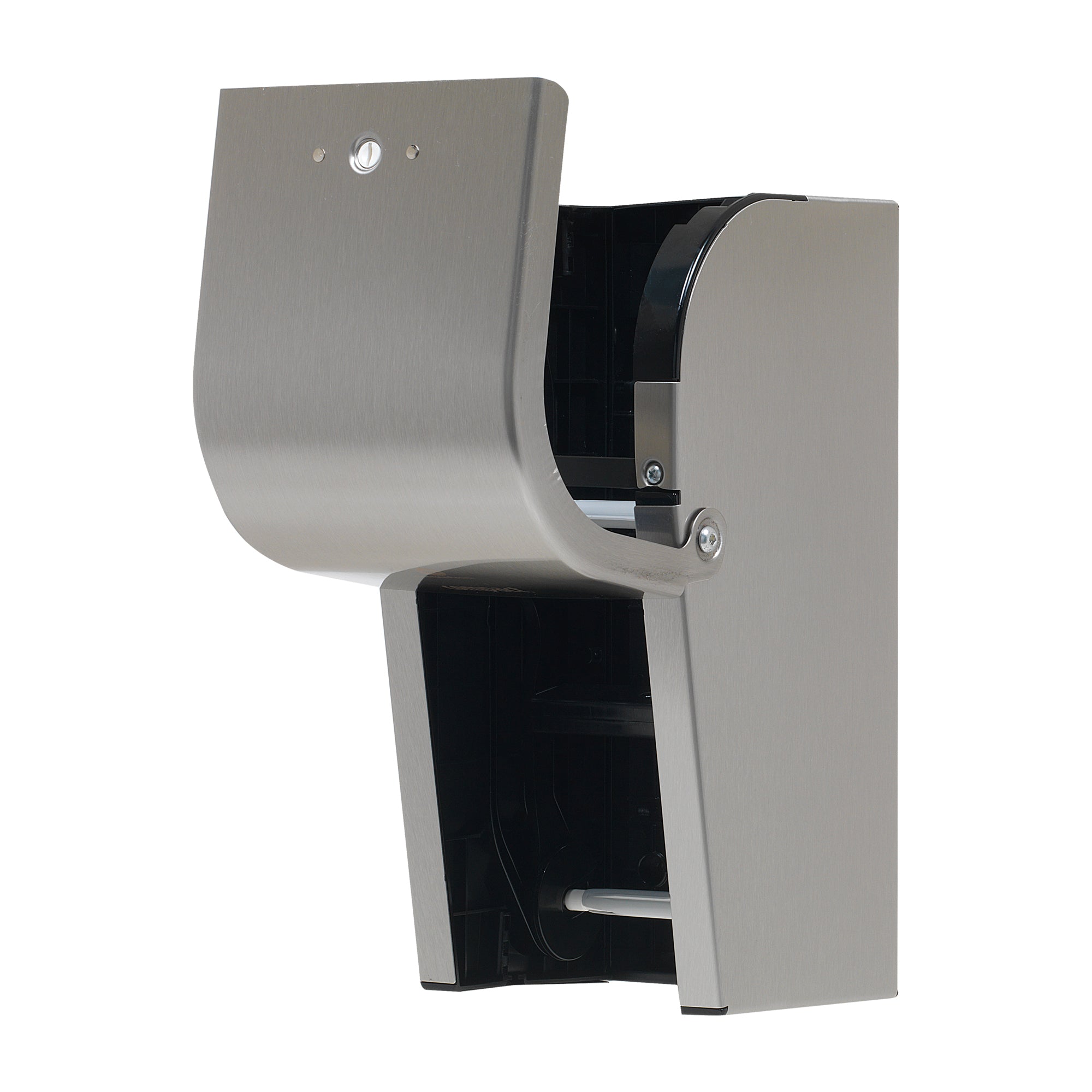 מתקן נייר טואלט אנכי דו- גלילי האטרקטיבי שלנו מסדרת Compact® מספקת קיבולת של עד פי שישה מגלילים סטנדרטיים דו-שכבתיים בודדים, תוך שמירה על המראה המקצועי. מתקן זה מספק עד 3000 גיליונות של רקמה דו-שכבתית איכותית לשירות רציף ושביעות רצון מוגברת של הפטרונים. תכונת הפתיחה האוטומטית מספקת למשתמשים שירות רציף ושביעות רצון. מציעה שקט נפשי לכל החים!