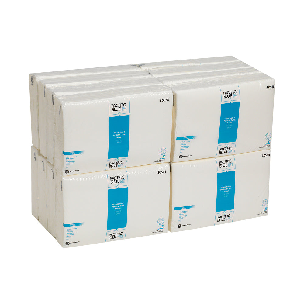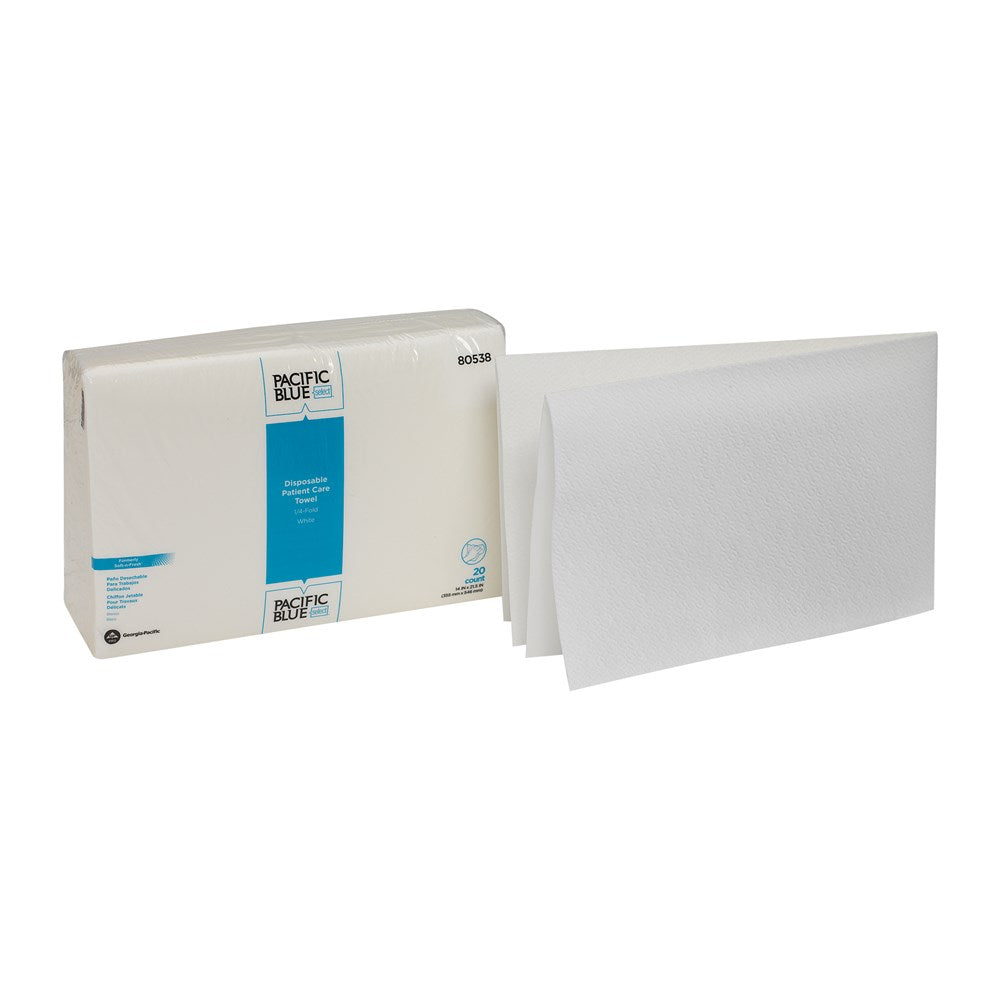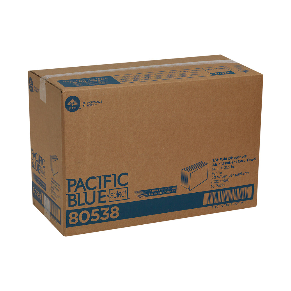 PACIFIC BLUE BASIC™ A400 מגבות יד חד פעמיות לטיפול בחולים מבית GP PRO, קיפול 1/4, לבן, (16 חבילות של 20 מגבות סהכ 320 מגבות)
